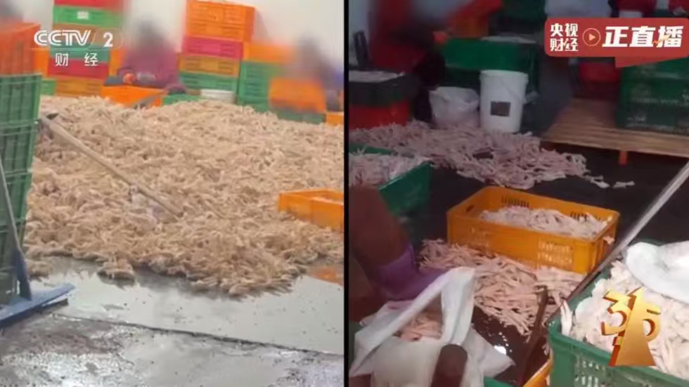 “3·15”晚会曝光内容显示,乖媳妇等品牌的网红鸡爪生产车间环境脏乱不堪,而且用双氧水对鸡爪进行了漂白保证卖相。双氧水,学名过氧化氢,作为强氧化剂和消毒剂常用于杀菌消毒,国家食品添加剂法规中明确不能用于鸡爪加工。