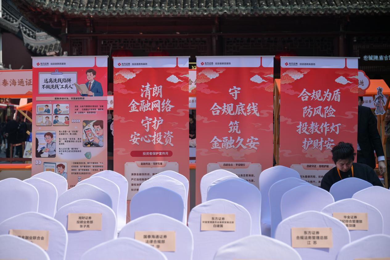 活动选址七百年海派文脉的豫园,承办方东方证券发布原创皮影戏《火眼识骗局》及防非舞台剧《“黄金”大劫案》,以民族精粹与沉浸式表演揭露非法证券活动原形,让合规防非理念在欢声笑语中深入人心。活动创新打造“防非投教合规市集”,市集设16个展位(含AI反诈工具体验区),上海市公安局经侦总队、上海外滩金融检察履职基地等司法机关“出摊”提供专业视角的防非反诈投教;上交所、上海市证券同业公会及东方证券等单位摆设投教摊位,通过互动游戏、动画微电影展播、普法宣传等形式,揭示非法金融活动模式,引导投资者“不贪小利、不信神话、不盲目跟风”,守护“钱袋子”。