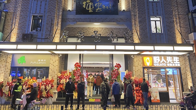 第一财经记者在上海德云社剧场看到,一楼常态开设的市集以小吃、文创、保险理财类金融产品等为主。二楼咖啡馆无演出时段可对外开放,可以买到网红“大蒜咖啡杯”。剧场周边多为开在老建筑底层沿街的小店,其中餐饮店铺的生意受剧场观众和围观市民流量的带动明显,但也有一些商铺仍在招商状态。